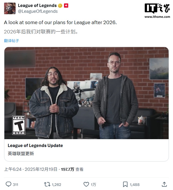 据彭博社报谈及官方随后发布的视频证据,代号为“League Next”的改版打算于 2027 年上线,涵盖视觉系统、客户端整合、玩法诊疗及生人体验优化。